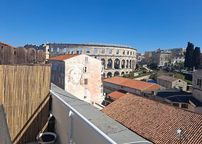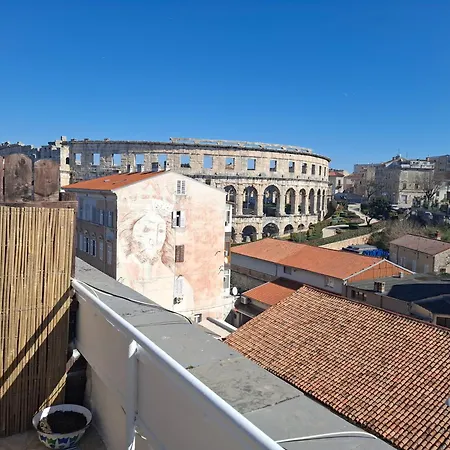 Apartman Terrace Dream View Over Amphitheatre od 35 m² nudi udoban smještaj za 2 gosta u Puli. Apartman je udaljen 10 minuta vožnje od zračne luke Pula.